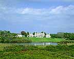 The grounds have nearly a quarter mile of ocean frontage, a tennis court and heated swimming pool. The expansive lawns and flower gardens combined with mature trees, ponds and pristine wetlands provide a private park-like setting. The rear facade of the 2 story main house, which is flanked by 2 graceful wings, faces south to dunes and the ocean. To one side is a staff/guest wing with several bedrooms, baths and a separate entrance. In the east wing is the library and in the west wing is a 20x28 ft. kitchen with 3 dishwashers and 4 refrigerators.